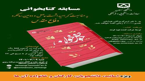 برگزاری مسابقه کتابخوانی به مناسبت گرامیداشت چهل و دومین سالگرد دفاع مقدس // - 13:13 تعداد بازدید: 204 کلمات کلیدی