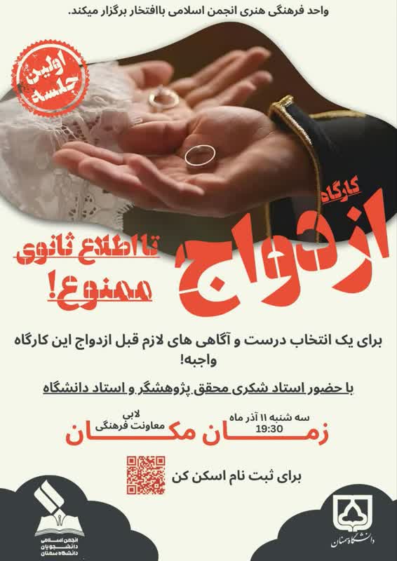 کارگاه ازدواج برای آمادگی‌های لازم و یک انتخاب درست باحضور استــــــاد شکــــــری محقق، پژوهشگر و استاد دانشگاه ویژه خواهران